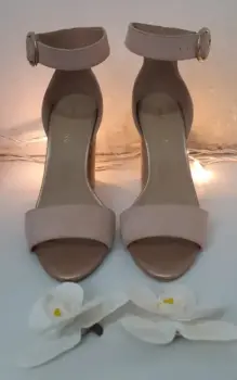 Sandalias nude con flor. Preciosas sandalias BRANTANO, tienen una flor que las hace ver bellísimas, sin embargo, también se les puede retirar la flor si deseas utilizarlas en un look más relajado. El tacón es de 10cm. Estan practicamente nuevas, tinen una sóla puesta. Estan super bonitas.