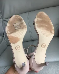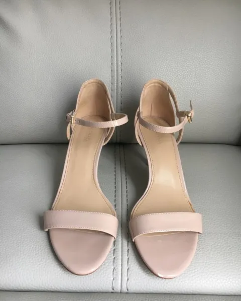 Sandalias de tacón bajo muy cómodas (6cm) detalles de uso que no afectan (tacón raspado) se aprecia en fotos, lo demás en excelente estado. Combinan con todo!