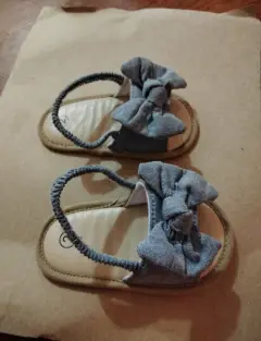 Sandalias para bebe moño mezclilla. Hermosas y pequeñas sandalias de suela blanda para bebé, en excelente estado y muy coquetas, importadas con Hibobi, azul claro tipo mezclilla y moño talla 12