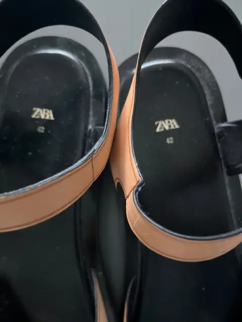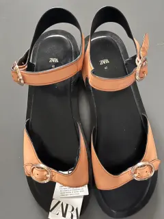Son unas sandalias marca Zara, nuevas, realizadas en piel, talla 42 europeo que corresponde a una talla 27.5 a 28 mexicano, en color camel, de piso.