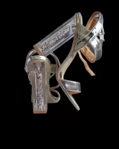 Sandalias plata de tacon rectangulo