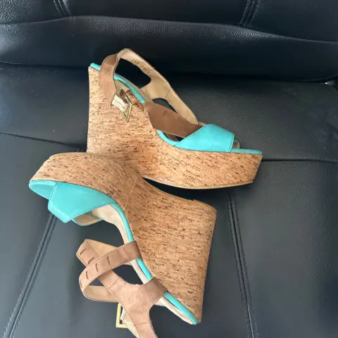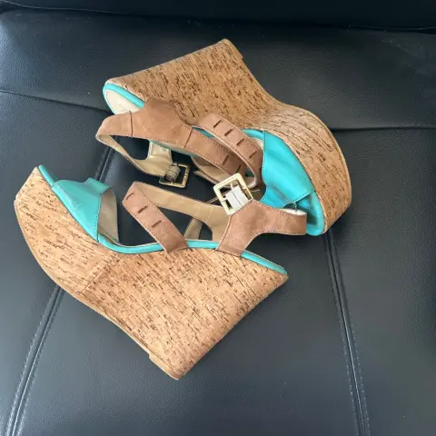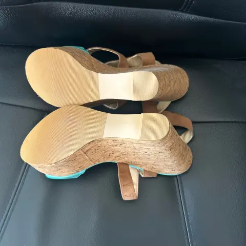 Sandalias plataforma. Sandalias de plataforma color café con verde, pulseras de cierre cruzadas, forro, suela y corte sintético hecho en México, muy cómodas número 6/9 US