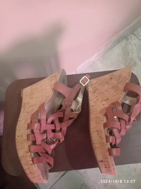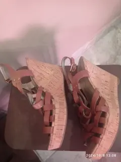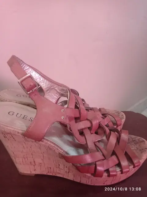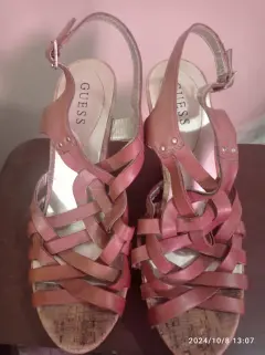 Sandalias color camel,con plataforma tipo corcho,correas cruzadas,marca Guess.#8 americano.Alto de plataforma:11.5 cmPoco usoBuenas condiciones