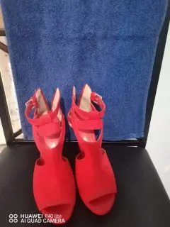Sandalias rojas de tacon número 12 en excelente estado. Talla numero 5. Una sola puesta.