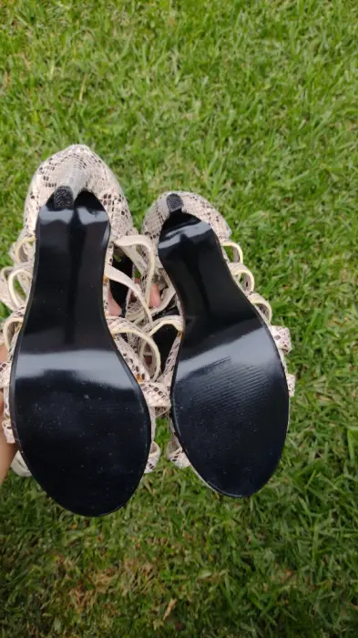 Sandalias snakeskin tacón. STEVEN MADDEN. Sandalias de gladiador snakeskin rodilla de tacón alto.* Punta abierta*Tacón de aguja. (12 cm)*Cierre con cremallera trasera con tiras.Las últimas 3 tiras de arriba se expanden un poco, tenen elástico.TACONES EXACTOS, NO ROTOS, NO CHUECOS.PUESTO UNA SOLA VEZ