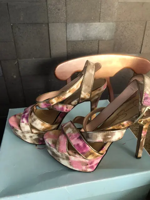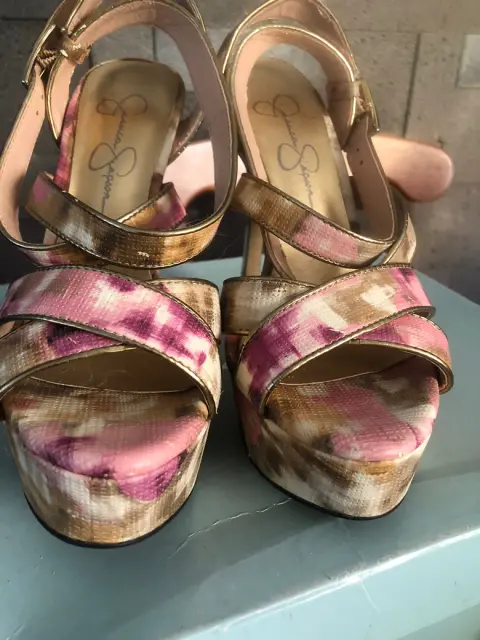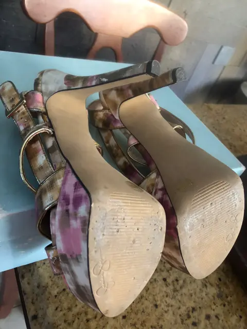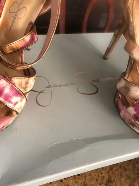 Sandalias tacón Jessica Simpson. Sin puestas, solo me los medí, tacón 12, plataforma delantera de 2.5 cm, muy bellas, cómodas y sin ningún detalle