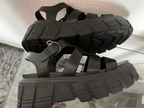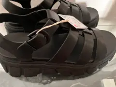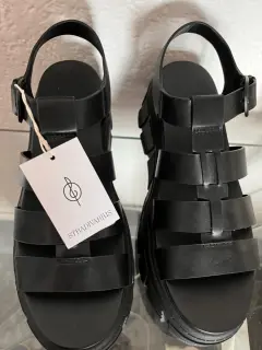 Sandalias talla 27 mex para dama. Sandalias cangrejeras negras marca Stradivarius talla 27 mexicano para dama, nuevas y con suela todo terreno