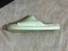 Hermosas sandalias tipo pantufla Melissa. Nuevas en su caja en talla 24mx, vienen a la talla.Color verde menta con acolchado.