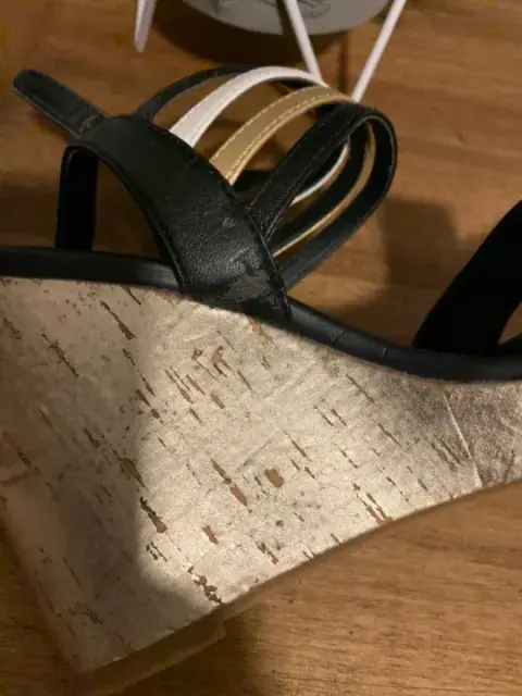 Sandalias tommy Hilfiger. Zapatos Tommy Hilfiger Negro blanco y dorado. Con detalle de descarapelado en las tiras del seguro. Alto de tacón 10 cms. Solo un uso se le dio, están hermosos.