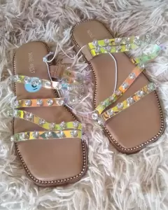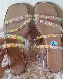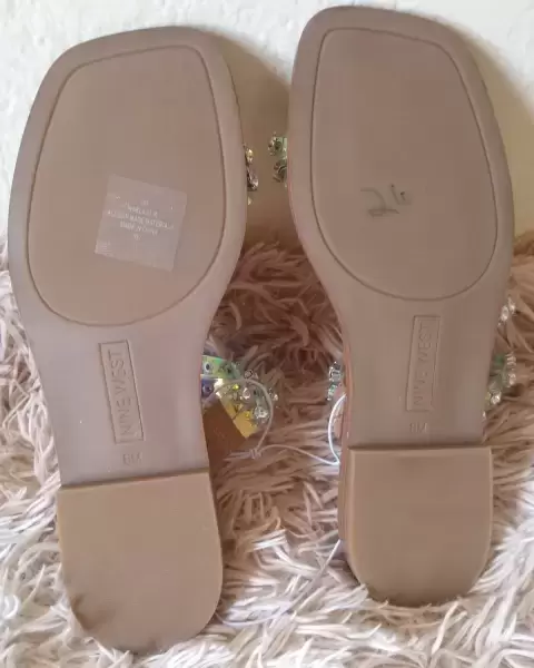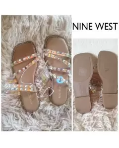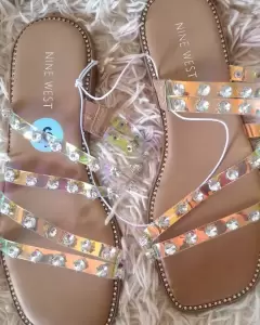 Hermosas sandalias primavera verano en tono tornasol transparente de Nine West con pedrería. Nuevos. En talla 6 USA 23 Mex.Trae u código en la parte de abajo cómo puedes ver en las fotos no tienen detalles son nuevos. La etiquta es la de abajo donde vienen los datos propios de la marca, asi como su numero de codigo.🚫POR FAVOR🚫NO OFERTES SI NO ESTÁS SEGURA DE COMPRAR Y PAGAR, Ayudemos nos todas 🙌🏽🌸OJO!! Grabo antes de enviar por seguridad de mi prenda, corroborando su estado 👁️👁️