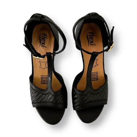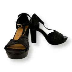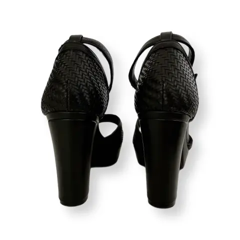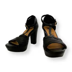 Sandalias / Zapatillas Negras con Tacón. Zapatilla flex súper cómoda con diseño tejido.Hecha de pielExcelente estado, con altura de tacón 8cm y plataforma de 2 cm.