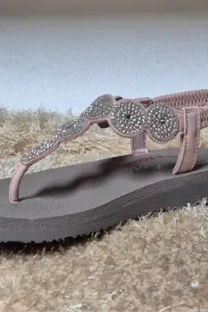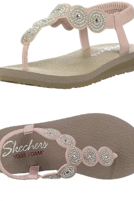 Skechers Sandalia StarsSparkle T-3Mx/6Us. Parte superior sintética, Empeine con correa en T circularcon adornos de diamantes de imitación *Tanga para el dedoEstilo sin cordones con correa elástica en el talónPlantilla cómoda y acolchada de YOGA FOAM®Suela exterior de tracción flexible *Altura del talón de 1/2"Nuevas e originalesEl mejor Precio q encontraras!!