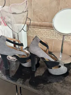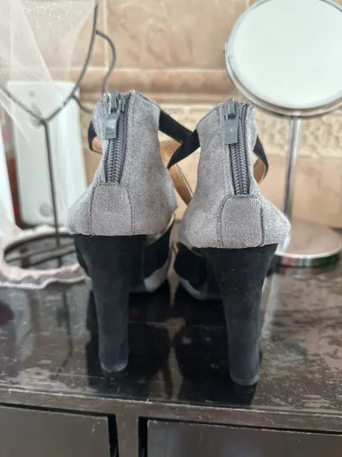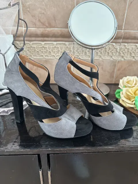 De ante, número 25, color negro con gris, seminuevo, tacón cómodo