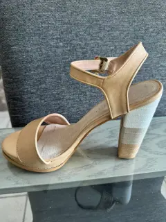 Zapatilla abierta de tacón ancho súper combinable, muy cómodos porq traen un poco de doble suela