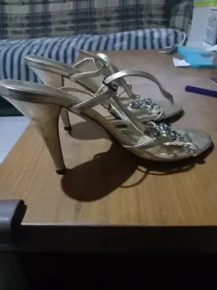 Zapatillas tipo sandalias, color Dorado con pedrería , talla 24.5 (mexicana) son de 2a mano pero están en buen estado.