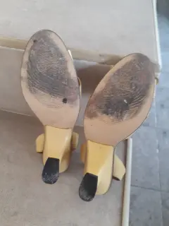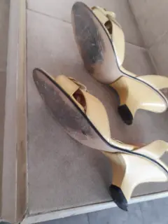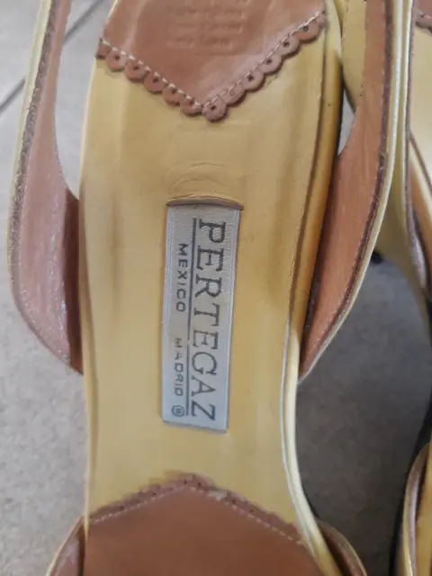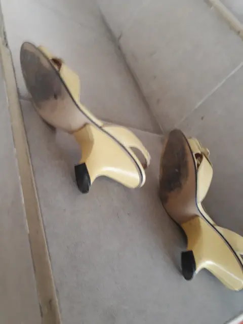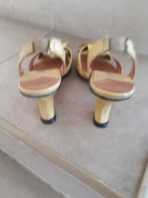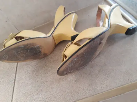 Zapatillas en piel, color amarillo, suela de cuero, 8cm de alto, talla 23.5 sólo dos puestas, marca pertegaz.