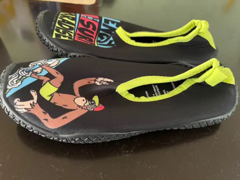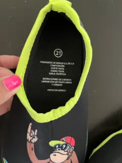 Zapato acuático para niño #21 completamente nuevos (solo que se le quitó la etiqueta ) nunca usados , color negros con amarillo y diseño de un changuito .