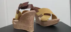 Zapatos andrea. Plataformas mostaza nuevos, ligeros, da a doble ancho si lo requiere, muy comodos