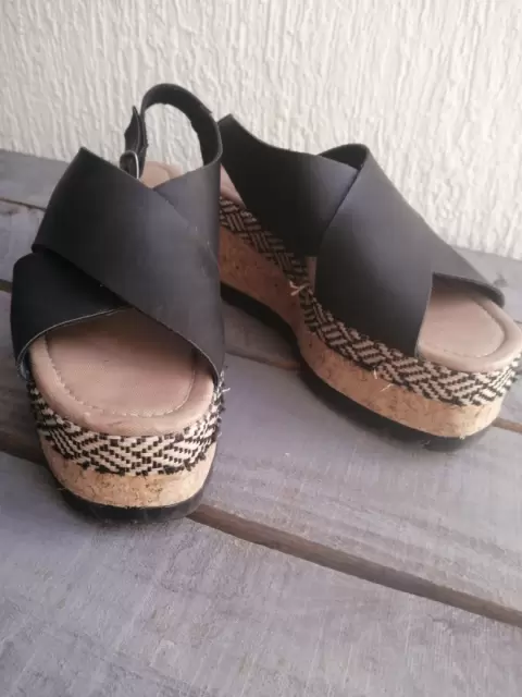 Zapatos con plataforma. Sandalias con plataforma, en excelente estado. Café con negro, #4. Muy cómodas!