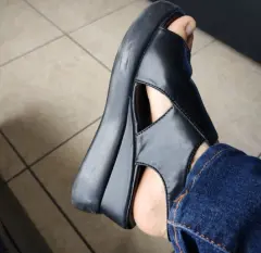Zapatos de plataforma muy cómodos talla# 3, negros con hebilla tacón 6.5cm ,