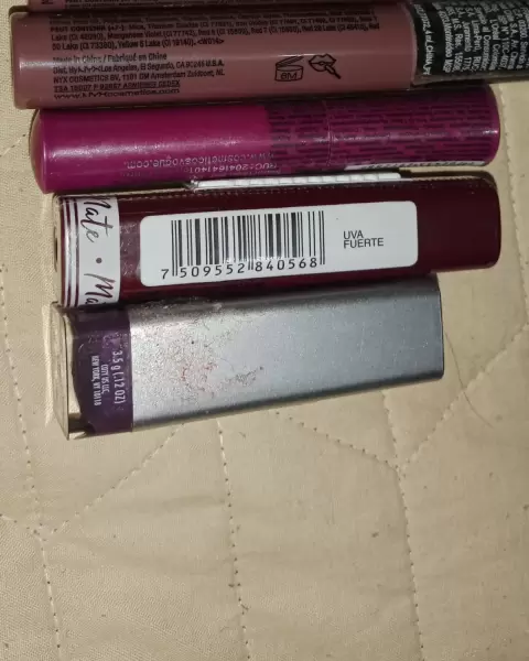 Lote de cosméticos originales. Lote de cosméticos súper precio y todo nuevo 2 sombras líquidas (oro y melón)1 delineador de cejas pelo a pelo 1 mascarilla para pestañas de posiciones4 labiales ( 1 nyx tono café , 1 Vogue tono bugambilia, 1 Vogue tono vino, 1 covergirl tono lila perlado)