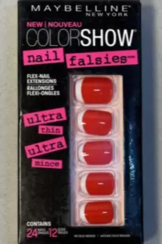 Maybelline color show nail falsies. Nail Falsies Keep it redUltra thin, ultra mince flex-nail extensionsself adhesive one of a kind designs24nails included in each packUñas postizas de acrílico, auto adheribles, super ligeras, flexibles, no necesitas pegamento extra.Paquete nuevo y único.