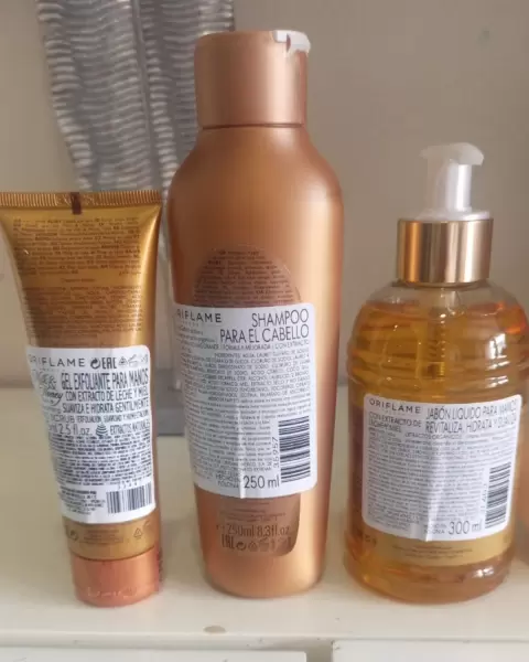 Set de higiene/ Belleza milk and honey. Set Milk and Honey Gold by Oriflame "La mezcla natural de miel orgánica" **Crema para Manos y cuerpo con extracto de leche y miel acondiciona y fortalece la piel 250 ml **Gel exfoliante para Manos con extracto de leche y miel suaviza e hidrata 75 ml **Shampoo para el cabello 250 ml **Jabón Líquido para manos revitaliza, hidrata y suaviza 300 mlTen la seguridad que son Productos 100% originales ya que somos distribuidores/socios directos de oriflame y nos dedicamos a la venta de catálogo de sus productos Por seguridad y salud de nuestros clientes son Productos sin devolución ni garantía ya que es un producto cosmético.