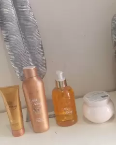 Set Milk and Honey Gold by Oriflame "La mezcla natural de miel orgánica" **Crema para Manos y cuerpo con extracto de leche y miel acondiciona y fortalece la piel 250 ml **Gel exfoliante para Manos con extracto de leche y miel suaviza e hidrata 75 ml **Shampoo para el cabello 250 ml **Jabón Líquido para manos revitaliza, hidrata y suaviza 300 mlTen la seguridad que son Productos 100% originales ya que somos distribuidores/socios directos de oriflame y nos dedicamos a la venta de catálogo de sus productos Por seguridad y salud de nuestros clientes son Productos sin devolución ni garantía ya que es un producto cosmético.