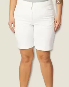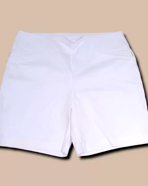 Shorts elásticos de talla grande Attire Woman, talla 18, color blanco sólido, 2. bolsillos frontales convenientes, hechos con una mezcla de tela elástica de rayón, nylon y spandex, estilo de atracción, nuevo sin etiqueta como mercancía de cierre en buenas condiciones.