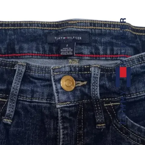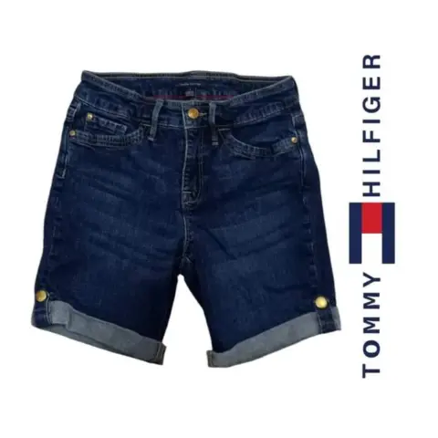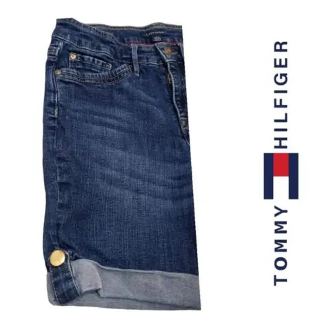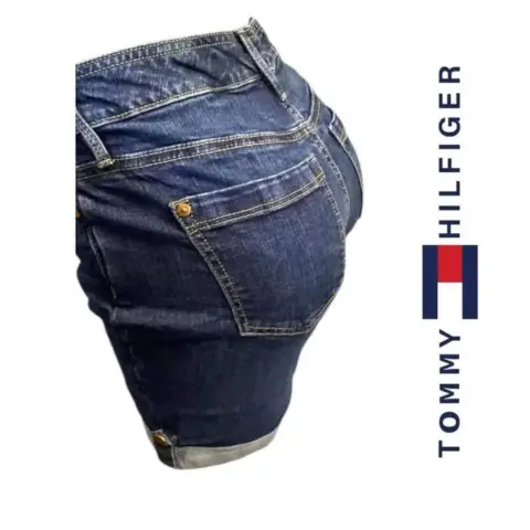 Bermuda Tommy Hilfiger t 2. Bermuda mezclilla Tommy Hilfiger t 2 doblez inferior, remaches y botón con grabado de la marca bolsillos frontales y traseros trabillas, 64cm cintura 76cm cadera 23cm tiro delantero 37cm largo total material 98% algodón 2% Spandex