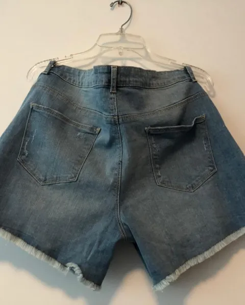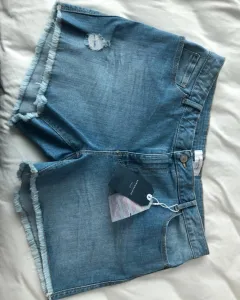 Color azul, talla 34 mex , nuevo, deshilado en la parte de abajo con adorno deshilado en la parte inferior derecha,en la parte trasera tiene bolsas con adornos de desgaste