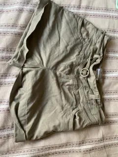 Hermoso short verde militar en tela que es strech, tiene a un costado cierre oculto y dos bolsas delanteras y dos traseras además cinturón a juego en mismo color, en muy buen estado en