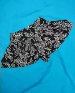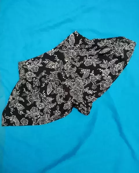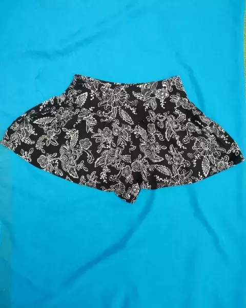 Mini short Forever 21, fresco negro con estampado. Mini short super fesco a la cintura en perfecto estado sin ningún detalle. Marca Forever 21 con cierre lateral. Medidas de cintura 35 cm, de largo de la cintura al tiro 35 cm. Es talla XS pero queda a una S, yo soy S-M y me quedó un poquito apretado de la cintura