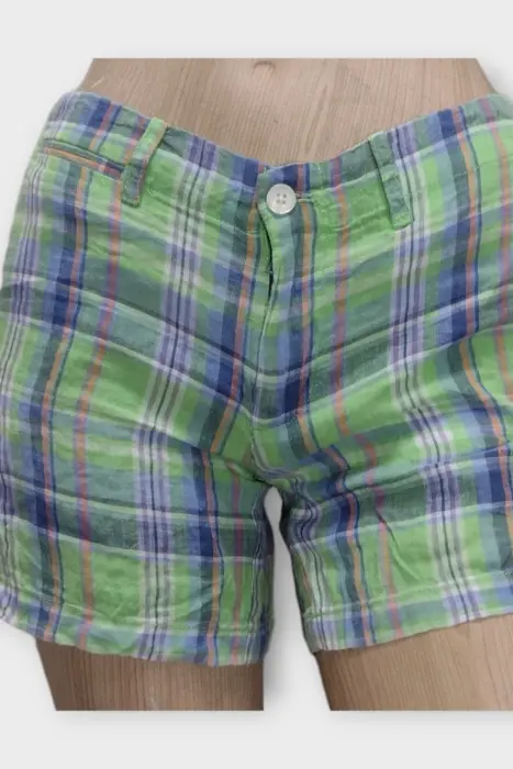 RALPH LAUREN Short Dama Lino XXS 2Marca: RALPH LAURENOrigen: Sri LankaMaterial: 100% LinoTalla: XXS - 2Estilo: ShortPatrón: CasualColor: VerdeCierre: Cremallera y BotónCadera: 41 cmLargo: 32 cmCintura: 38 cmMuslo: 28 cmTiro: 16 cmEntrepierna: 30 cmRopa de USO en muy buen estadoModelo Único Lo que ves es lo que comprasAclara todas tus dudas antes de comprar