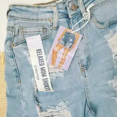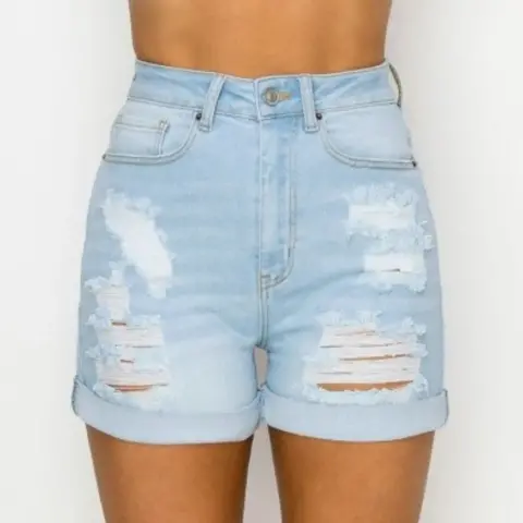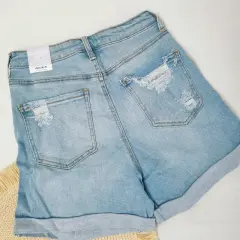 Relaxed Mom Shorts. De la marca Wax Jeans, excelente calidad de la tela, acabados y diseño. La tela es strech, arma padrisimo. Es un short muy cómodo de tiro alto. Se ve moderno por su diseño con rotos. Color azul claro mezclilla. No te arrepentirás. Estrénalo!