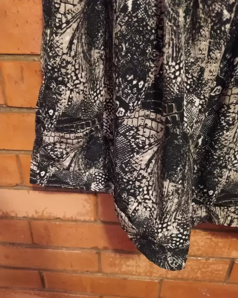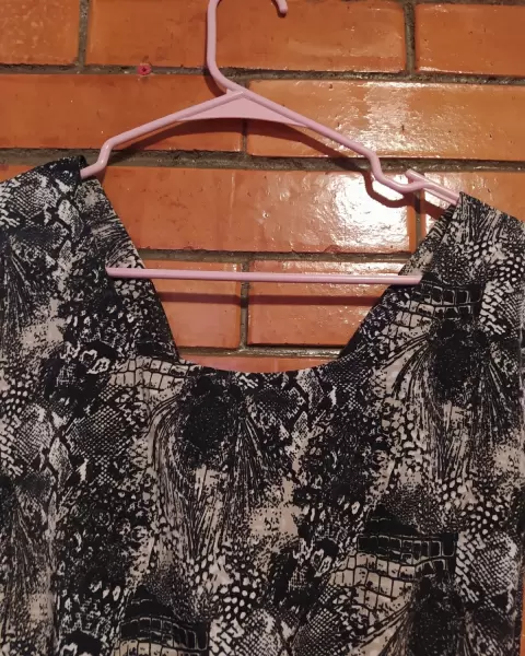 Lindísimo romper estampado, con escote drapeado, elástico en la cintura, sin ningún detalle.
