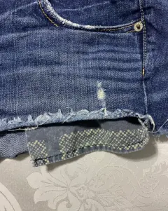 Short de mezclilla con strech, 4 bolsillos, deshilachado en las piernas.Medidas/ cintura: 40 cm, cadera: 45 cm, tiro: 22 cm, largo: 25 cm.