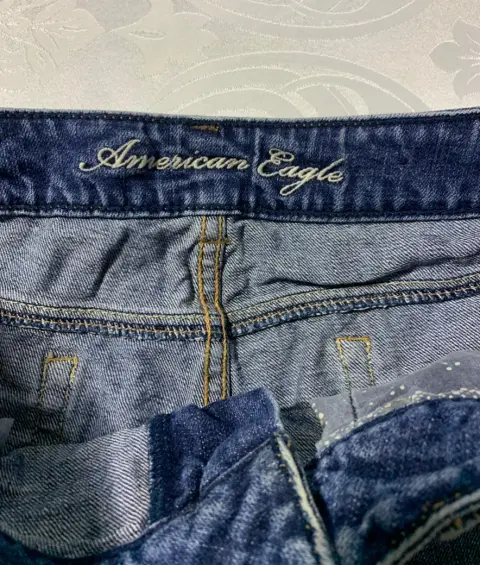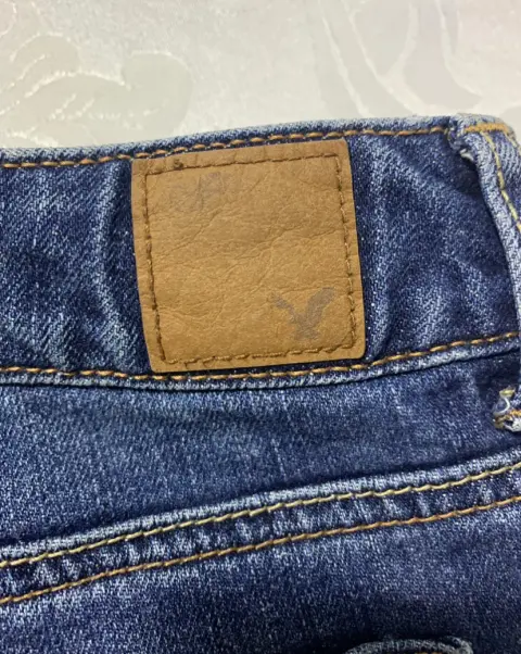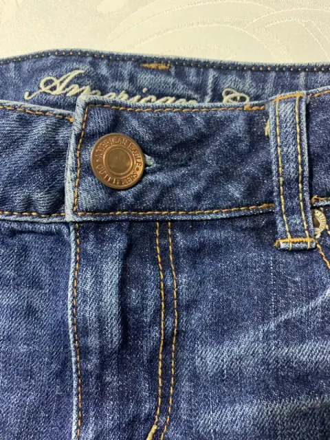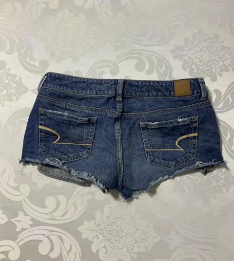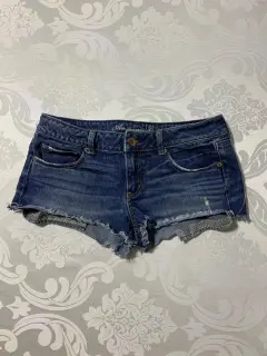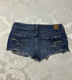 Short American Eagle. Short de mezclilla con strech, 4 bolsillos, deshilachado en las piernas.Medidas/ cintura: 40 cm, cadera: 45 cm, tiro: 22 cm, largo: 25 cm.