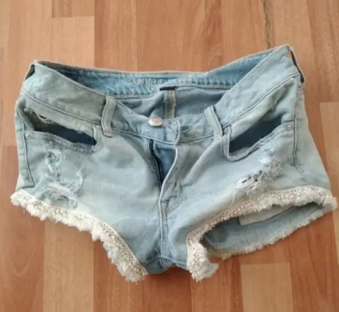 Short American Eagle S. Short American Eagle talla S de mezclilla. Es un short con detalles blancos y es de muy buena calidad