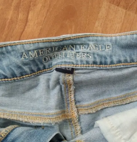 Short American Eagle talla S de mezclilla. Es un short con detalles blancos y es de muy buena calidad