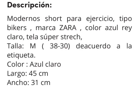Short bikers , ZARA color azul. Hermoso bikers , marca ZARA en color azul , súper strech , talla M .Medidas se dejan en las imágenes .En buen estado