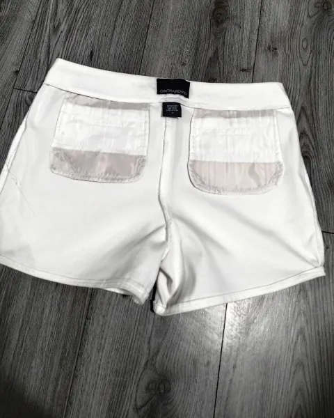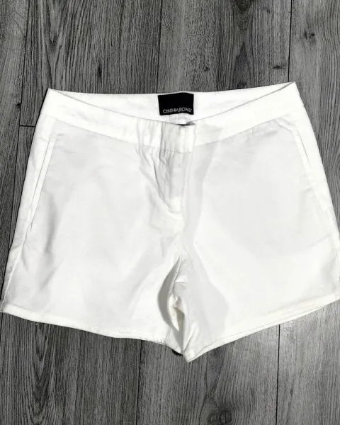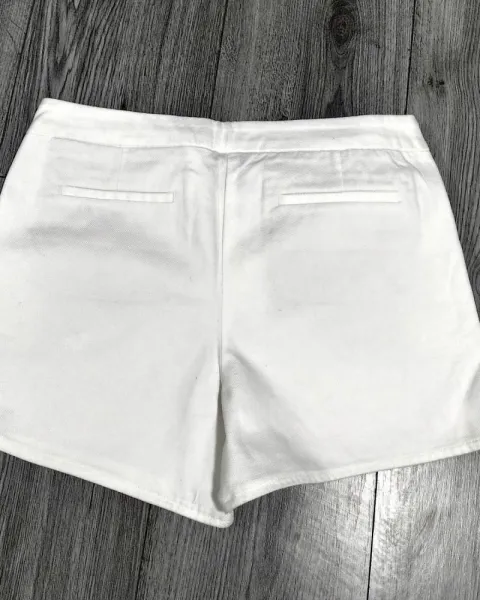 Short blanco. Talla 4, comparto medidas de cintura 39 cm, de cadera 47 cm, de largo 36 cm.