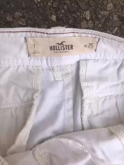 Short marca Hollister, talla 1, también viene marcado como talla 25, blanco, es corte a la cadera, muy corto.