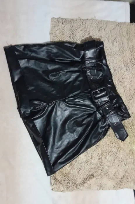 Short corto, campana prinzado con cinturón grueso, color negro tipo piel, ideal para salir a un centro nocturno o ir a la oficina