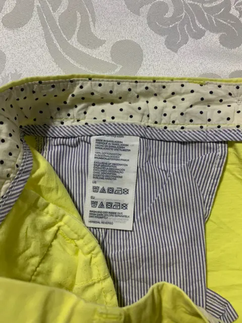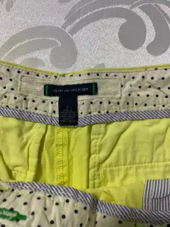 Short casual Tomy. Short casual sin strech, con 4 bolsillos. Color amarillo intenso.Medidas/ cintura: 38 cm, cadera: 47 cm, tiro: 21 cm, largo: 30 cm.