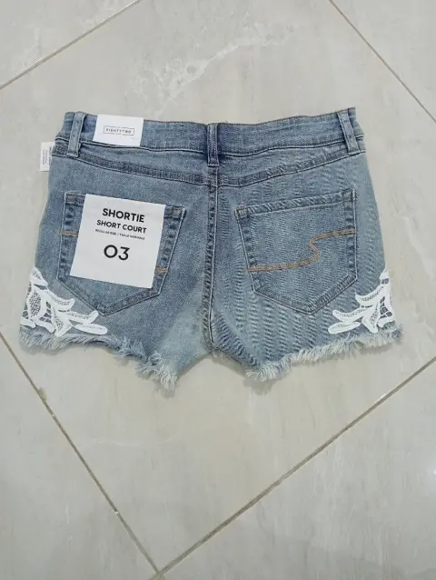 Short con detalle de encaje. Short de mezclilla con detalle de encaje, talla 3, completamente NUEVO! Marca ARDENE
