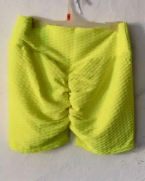 Short con Textura neon. Short color neon con textura. Teala suave. Talla M, puede queda una S. Ajuste en gluteos. Nuevo.Ideal para hacer ejercico o practicar una disciplina como yoga.