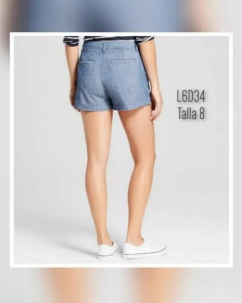 Hermoso short azul, aparente mezclilla, la tela es agradable nada tiesa, bolsillo traseros y delanteros, botón y cierre delantero.Medidas largo 36.5, contorno pretina 81cm