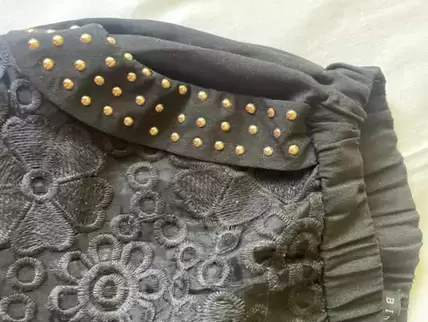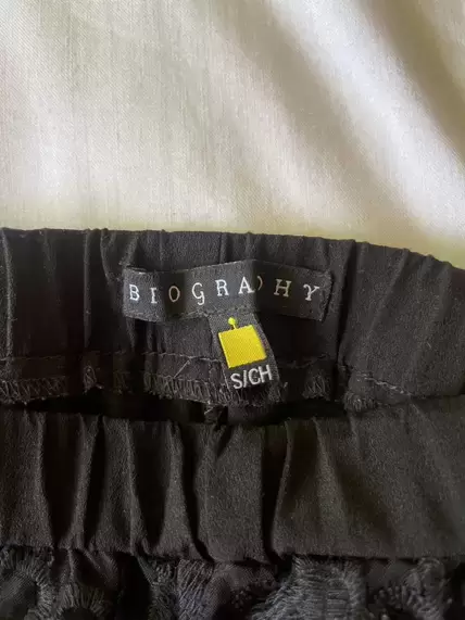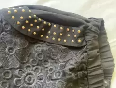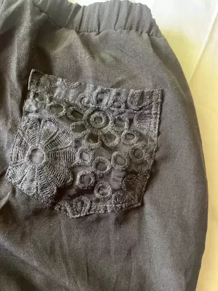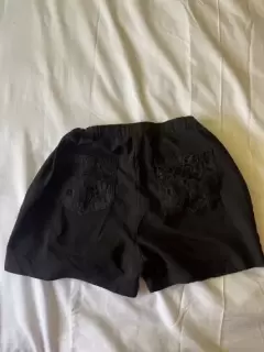 Short corto negro, con diseño en bolsas frente y traseras, talla S, cintura de resorte.