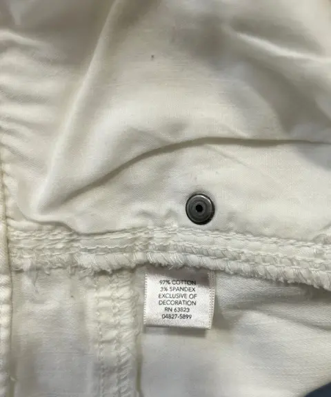 Bonito short de mezclilla blanco Christopher banks, dice talla 12, yo creo que es L o XL, ☘️medidas, cintura 44, caderas 52, largo 51, tiro 29.☘️🌸B032.🌸
